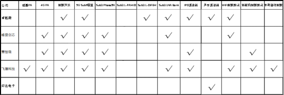 注:打勾代表产品线覆盖,空白代表产品线空缺